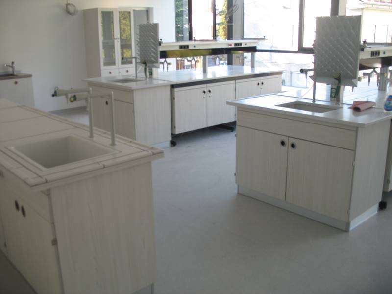 • laboratorij kemije sredinski eksperimentalni pult z digestorijem in učiteljevo eksp.mizo